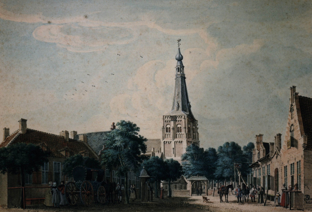 View of the market square in Tilburg with the church and cemetery in the background. (Jan de Beijer, 1742. Credits: Tilburg Regional Archives)