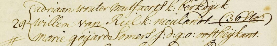 On 28 March 1732, three people were buried in Tilburg: Adriaan Mutsaerts, Willem van Riel, and Marie Somers. The entries provide some additional details. First, Adriaan and Marie have a patronymic listed: Adriaan was a son of Wouter, Marie was a daughter of Goijard. This is very helpful for further research. All three have letters indicating their marital status. The ‘k:’ stands for ‘kinderen,’ meaning that the person had children (and thus, most likely, married). The letters ‘j:d:g:o:’ are an abbreviation for ‘jonge dochter, geen ouders,’ meaning that the person was unmarried and no longer had parents. All three also list their places of residence: Berkdijk, Nieuwland, and Oost-Heikant. Finally, Willem van Riel’s records indicate that a sum of 36 stuivers was paid for additional services at the funeral. Occasionally, “avond” was mentioned. This mainly occurred when very young children were buried, in the evening without any form of funeral service or ceremony.